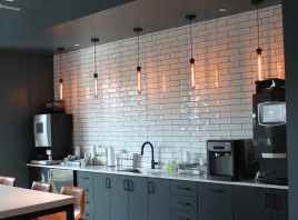 Speaking of the forthcoming E|SPACES location in Knoxville, the sign is up on the building at Western Plaza where the upscale co-working site will be housed (see first photo below). We had a chance last year to tour the E|SPACES site in Downtown Franklin, and several photos from that visit are spotlighted below showing community work spaces, the break areas, and private offices.