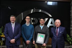Photo 3: Justin Nussbaum of Ascend Manufacturing, left, receives the third-place “Tom Ballard Innovation Award.” The award was given to him by Tom Ballard, right, at PYA’s Knoxville headquarters.