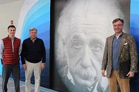 (Pictured here are Ryan, Richard and Rick {left to right} in front of the Einstein mural; a photo of the amphitheater looking up; and a photo if you were seated in the amphitheater for an event and looking up at the reception area.)