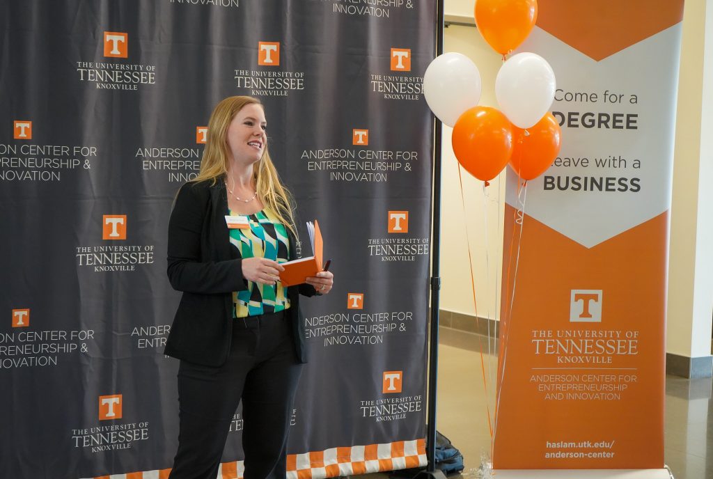 Breanna Hale, the Executive Director of ACEI welcomed an audience of about 30 to the annual awards ceremony. She also welcomed the President of UTK, Boyd who came to support the student start-ups.