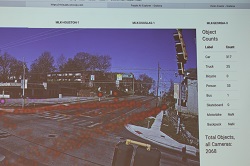 UTC’s Mina Sartipi (pictured here) showed a live video feed from the cameras on the poles, and she demonstrated how the picture quality is degraded to protect the identity of the cars and people. She added that none of the video footage is stored.