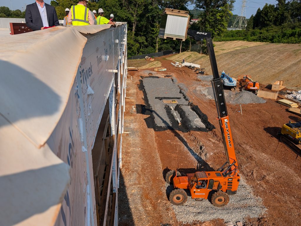 While the housing development is still under construction, the community was able to watch the solar panels be lifted onto the roof of the property.