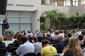 It was a grand finale as seven of the eight teams participating in the inaugural “HealthTech Accelerator” in Chattanooga presented their companies during yesterday afternoon’s “Demo Day” at Unum’s headquarters. The pictures below showcase Marcus Shaw, Chief Executive Officer of CO.LAB, the coordinating organization, and Jennifer Skjellum, CO.LAB Program Director as well as a montage of the mentors from the co-sponsors (Erlanger Health Systems and Unum), and the crowd attending the festivities.