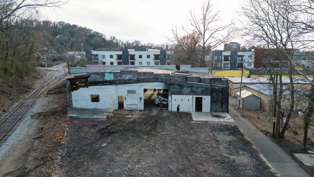 The new home is located in what was probably a 1920s-era building that had originally served as a metal fabrication shop. The wood-framed patio had burned and some of the other roofing had caved-in. Johnson Architecture was previously located in Cherokee Mills where PYA, the power behind teknovation.biz, is also located. After a temporary move to the former Knoxville News Sentinel building for more than a year, the firm held an open house on May 9.