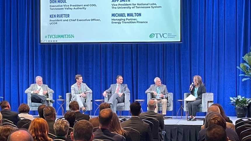 Later, Tracy Boatner, President and CEO of the East Tennessee Economic Council, moderated an all East Tennessee panel that featured Don Moul, Executive Vice President and Chief Operating Officer of TVA; Ken Rueter, President and CEO of United Cleanup Oak Ridge; Jeff Smith, UT Vice President for National Labs; and Michael Walton, Managing Partner at Energy Transition Finance.