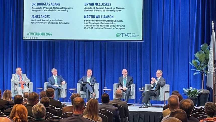 The focus on Wednesday was on two topics – “Securing America’s Security and Global Leadership” and “Forging Tomorrow’s Advanced Energy Solutions.” Sean Williams, President and Chief Executive Officer (CEO) of Knoxville-based Protection Strategies Inc., moderated a panel that featured James Andes, UTK Director of National Security Programs, and Martin Williamson, Senior Director of Global Security and Strategic Partnerships at Y-12, along with Douglas Adams, Associate Provost for National Security Programs at Vanderbilt, and Bryan McCloskey, Assistant Special Agent in Charge with the FBI.