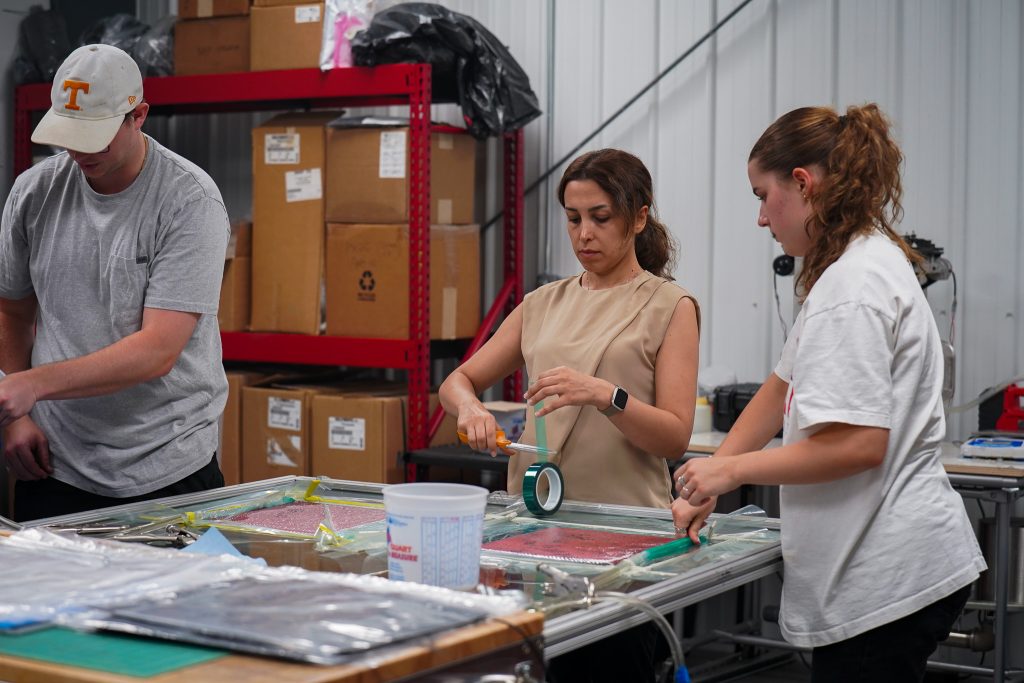 “It’s so much waste that it could fill up the entire Covenant Health Park stadium downtown up to the rim every year. All of that goes to landfill, and it’s an expensive material,” Ghossein explained. “So, I saw a business opportunity to collect all those trims and make this new kind of fabric that can be solidified into composite parts.”