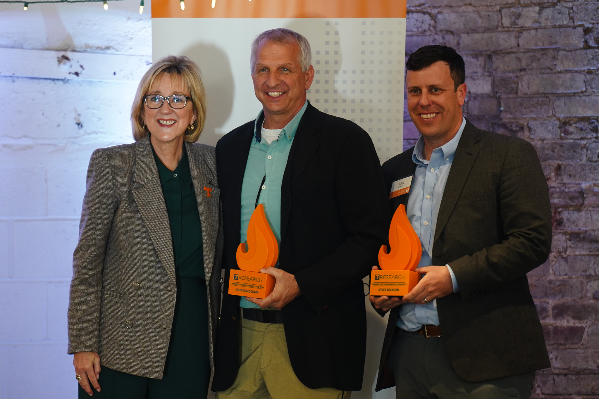 They were recognized Wednesday afternoon during an event at The Emporium in Downton Knoxville where UTK Chancellor Donde Plowman noted that “this moment has been a long time coming” since the idea was first presented to her nearly two years ago. Those pitching the fund were Deb Crawford, Vice Chancellor for Research, Innovation, and Economic Development, and Marc Gibson, Associate Vice Chancellor for Partnerships and Economic Development.