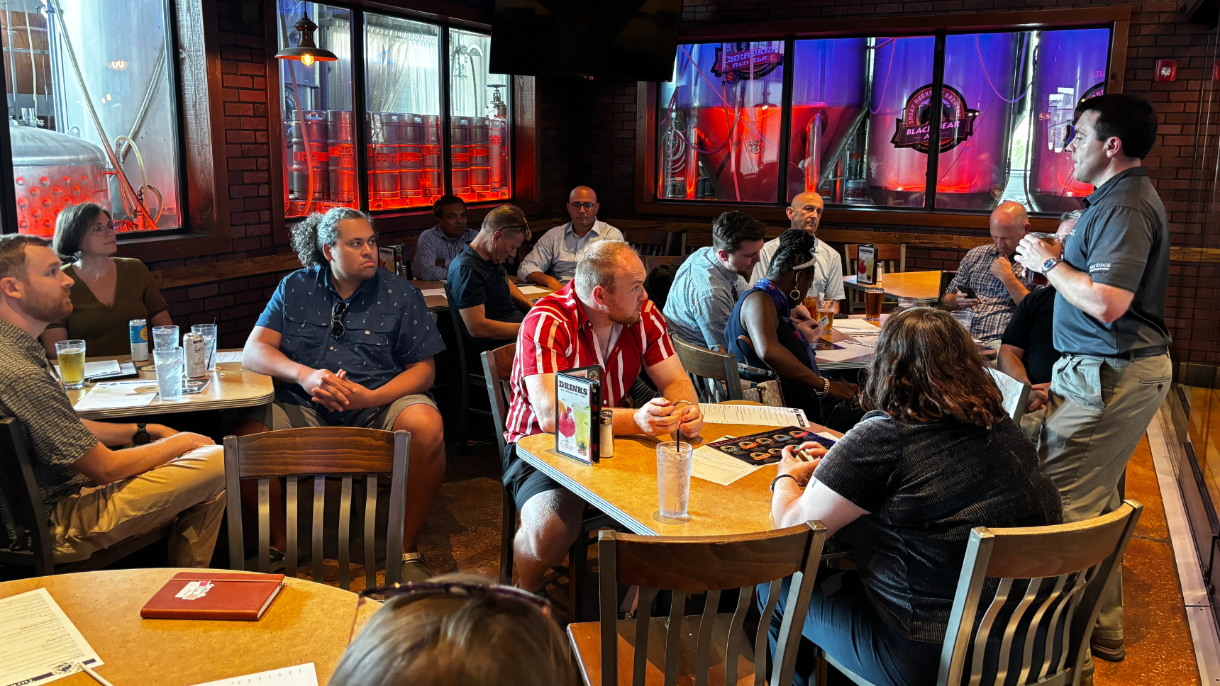 Six of the seven innovators selected for the 2024 “Innovation Crossroads” cohort at Oak Ridge National Laboratory (ORNL) spent Thursday afternoon with ecosystem partners at Smoky Mountain Brewery in Turkey Creek. The Founders’ Forum event is a monthly informal gathering where entrepreneurs can hear talks, learn lessons, and participate in Q&A sessions with program alumni, community members, and experienced startup founders.