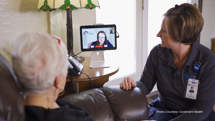 With the virtual hospital, the care is instant. Patients have an immediate lifeline to their healthcare team. Each person who is eligible and opts into Advanced Care at Home receives a tablet from Covenant Health that can be used to communicate with nursing and physician staff.