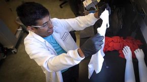 Kumar received funding for his Ph.D. from the National Science Foundation (NSF) and was also part of a $5 million U.S. Department of Energy grant through its Advanced Research Projects Agency – Energy (ARPA-E) program that produced the world’s first printed stretchable battery shown here in two photos.