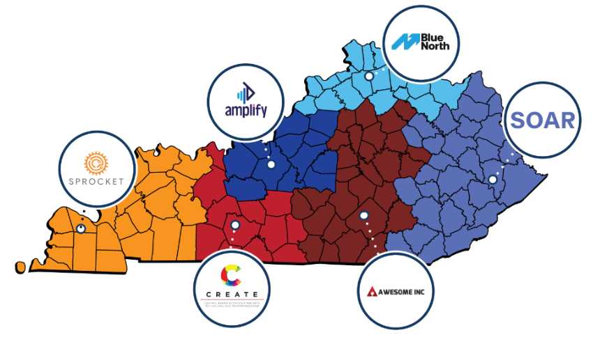 The state contracts were awarded through a competitive request for proposals process conducted earlier this year. The awards and funding are based on each hub’s plans to serve and grow entrepreneurship throughout an entire region. The coverage areas of the six hubs have been remapped to ensure comprehensive services throughout each region and to better allocate resources to all of Kentucky’s 120 counties.