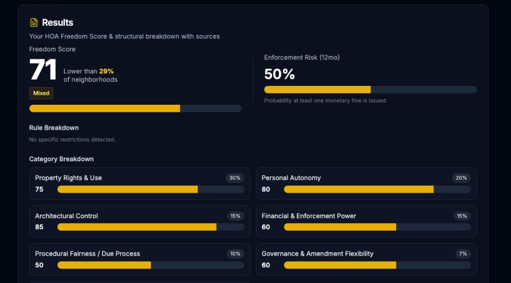 Now, thanks to Morgan and Getenew’s work, the Homestand AI technology analyzes HOA rules using legal databases and explains them in plain English. It finds contradictions, flags overreach, and gives every community a “Freedom Score,” which is a measure of HOA control.
