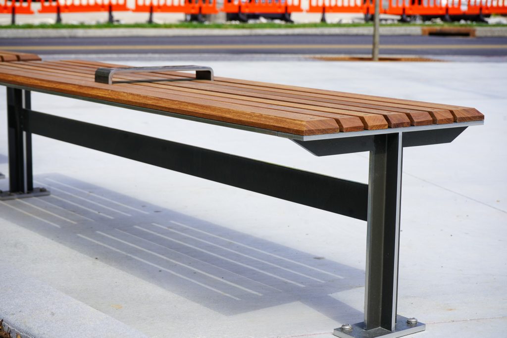 Trusted Field Services was contracted to install about 80 benches across the site, as well as all the bike racks and pedestrian-protection cement work near the curbsides.