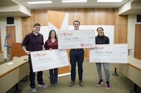 We recently posted this article covering the finale of the semi-annual “Vol Court Speaker Series and Pitch Competition” that was won by Kaleb Winders for his Rolling Storage idea. Second place went to Alex Weber and Makenzie Swicegood for Back Door, while the third place winner was Third place winner was Moriah Goss who pitched Maternity Muscle. Here’s a photo of the winners who are (left to right) Weber, Swicegood, Winders, and Goss: