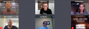 Ahead of the pitches, Co-Host Brandon Bruce (pictured in the screenshot above with the judges and Cortney Piper, the other co-host) highlighted many of the accomplishments that occurred in the region in the past year. “It has been an extremely busy and fruitful 2020,” he said, underscoring the “sizzle reel” that featured four local entrepreneurs – Tanika Harper, Hash Hashemian, Bill Malkes and Randy Boyd.