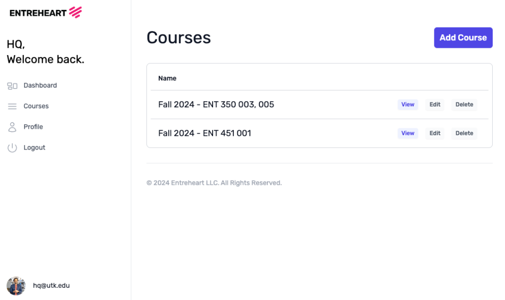 Over the next five weeks, HQ coded a full-fledged app called ‘Entreheart.ai,’ where the AI grader, which he calls ‘Ash,’ can provide students with rapid analysis of their projects, make suggestions, and offer a real-time feedback loop. It also helps professors stay on track with student progress and serve as a co-pilot in the grading process. Educators can feed their unique materials into the system – lectures, lessons, past assignments, grading rubrics, and suggestions into the AI model.