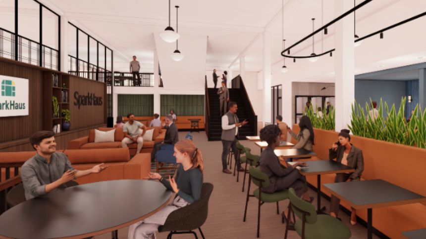 Tenants began moving into the space this week, with a grand opening celebration slated for September 22. SparkHaus offers more than 50,000 square feet of co-working and collaborative areas, 34 private offices, and versatile meeting and event spaces.