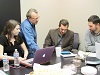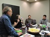 BELOW: Cathy (first photo) and Joe Vangieri (next two photos) of Children’s Media Studio – “Sing and Spell” and members of their team discuss advanced analytics with Blair Christian and Scott Stevens of PYA Analytics.