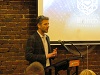 BELOW: (FIRST PHOTO) – Brian Worley (right), President and Chief Executive Officer of PYA Analytics, and Stevens (left) talk with Peter Bassa of Preteckt. (SECOND PHOTO) – Jim Biggs, Executive Director of the Knoxville Entrepreneur Center, speaks at the public meeting. (THIRD PHOTO) – Launch Tennessee’s Jason Denenberg addresses the crowd that welcomed “The TENN” companies at Tuesday evening’s event in Downtown Knoxville.