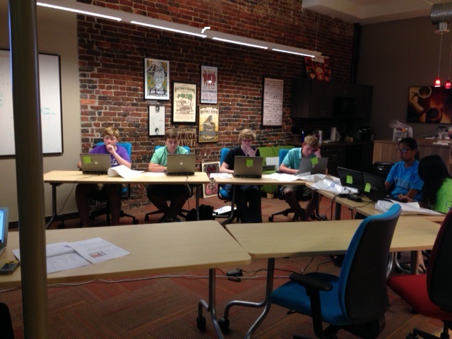 We stopped by the Knoxville Entrepreneur Center around noon on Monday for another purpose, but saw that the participants in this week’s TN Code Academy were hard at work. The week-long day camps, being held across the state this summer, have been spotlighted previously on teknovation.biz. They teach young people the basics of computer programming, including HTML, CSS, JavaScript, gaming, design fundamentals and web application. Students will learn from expert mentors, programmers and various industry experts throughout the week. The KEC event runs through Friday.