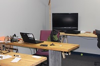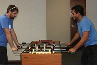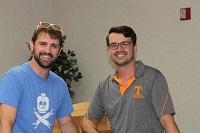 We stopped by Friday’s open house at UpStart Knoxville to see the progress that has been made since the co-working community moved into its new space in Suite 140, 408 North Cedar Bluff Road. Pictured below, in order with odd numbered photos on left and even numbered on right, are: (1) Jeff Gothcher and Michael Goldsborough, the leaders of UpStart; (2) the outside entrance to the building; (3) the inside entrance; (4) the shared office of Gotcher and Goldsborough; (5) the “bull pen” area; (6) a vacant walled office; (7 and 8) some of the “stress relief opportunities” as demonstrated by Gotcher and Haseeb Qureshi, better known as HQ; (9) the lounging area near the “bull pen”; and (10) the very important kitchen area.
