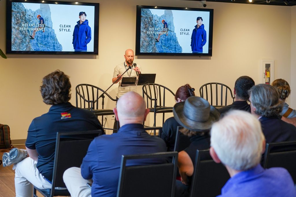 Loizeaux and his team brought some of the best-selling pants, shorts, and fire-proof puffer jackets for attendees to feel and evaluate up close.